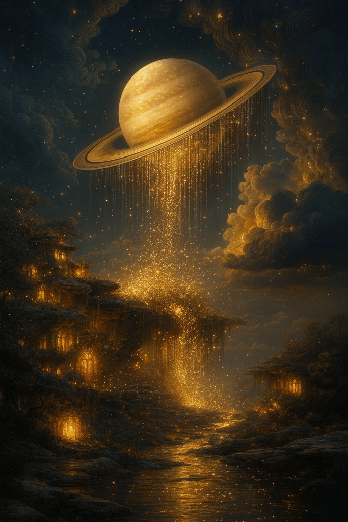 - Alchemy: Saturn represents the base metal lead, the starting point of transformation. The disappearance of rings mirrors the Nigredo stage, when form dissolves to prepare for rebirth.